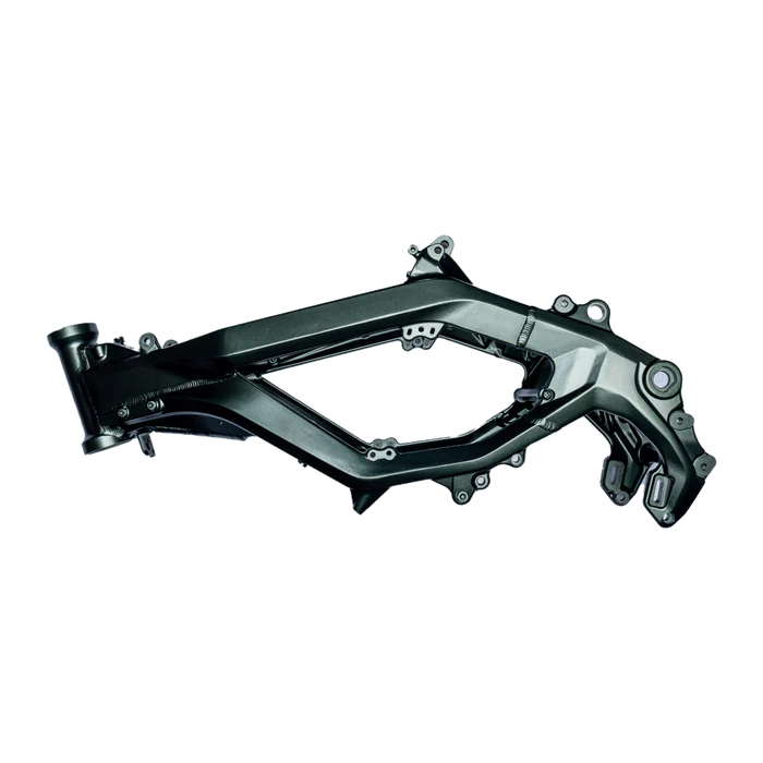 Every mounting point is machined to support direct installation of stock and aftermarket parts—including motors, suspension, swingarms, battery trays, and wiring harnesses.