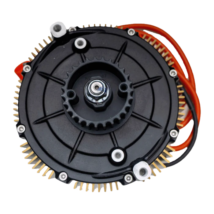 Gearing Advantages: The internal gear reduction allows the motor to operate efficiently at high RPMs while delivering massive torque to the rear wheel. It also allows for the use of a single-speed final drive chain without sacrificing low-end torque or top-speed potential.