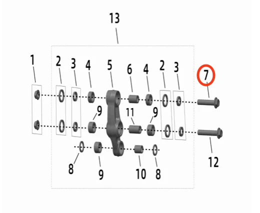 OEM replacement rear shock linkage top axle bolt for Ultra Bee.